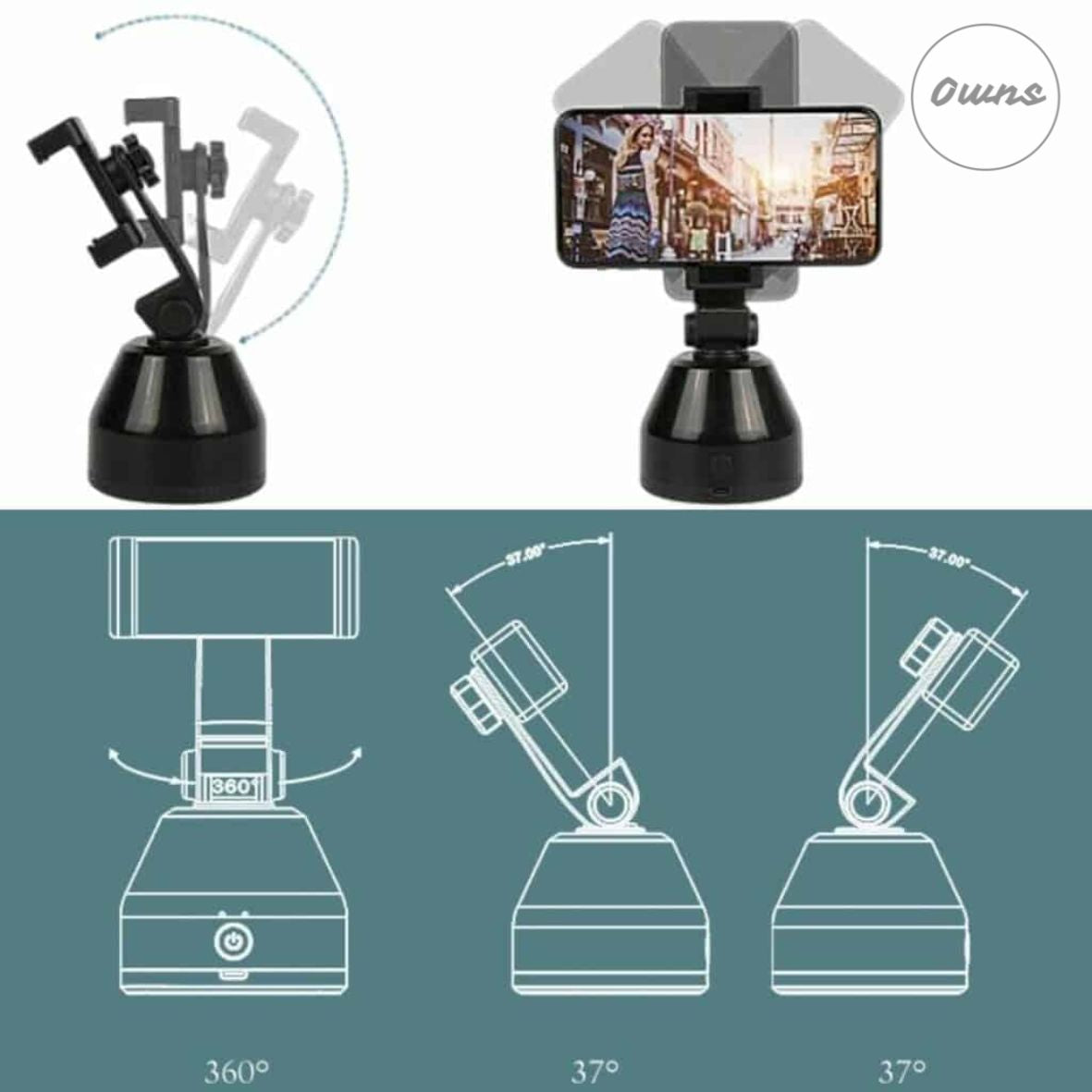 🤳 Seguimiento automático 360°: La base gira en todas direcciones y sigue tus movimientos sin que tengas que ajustar nada.