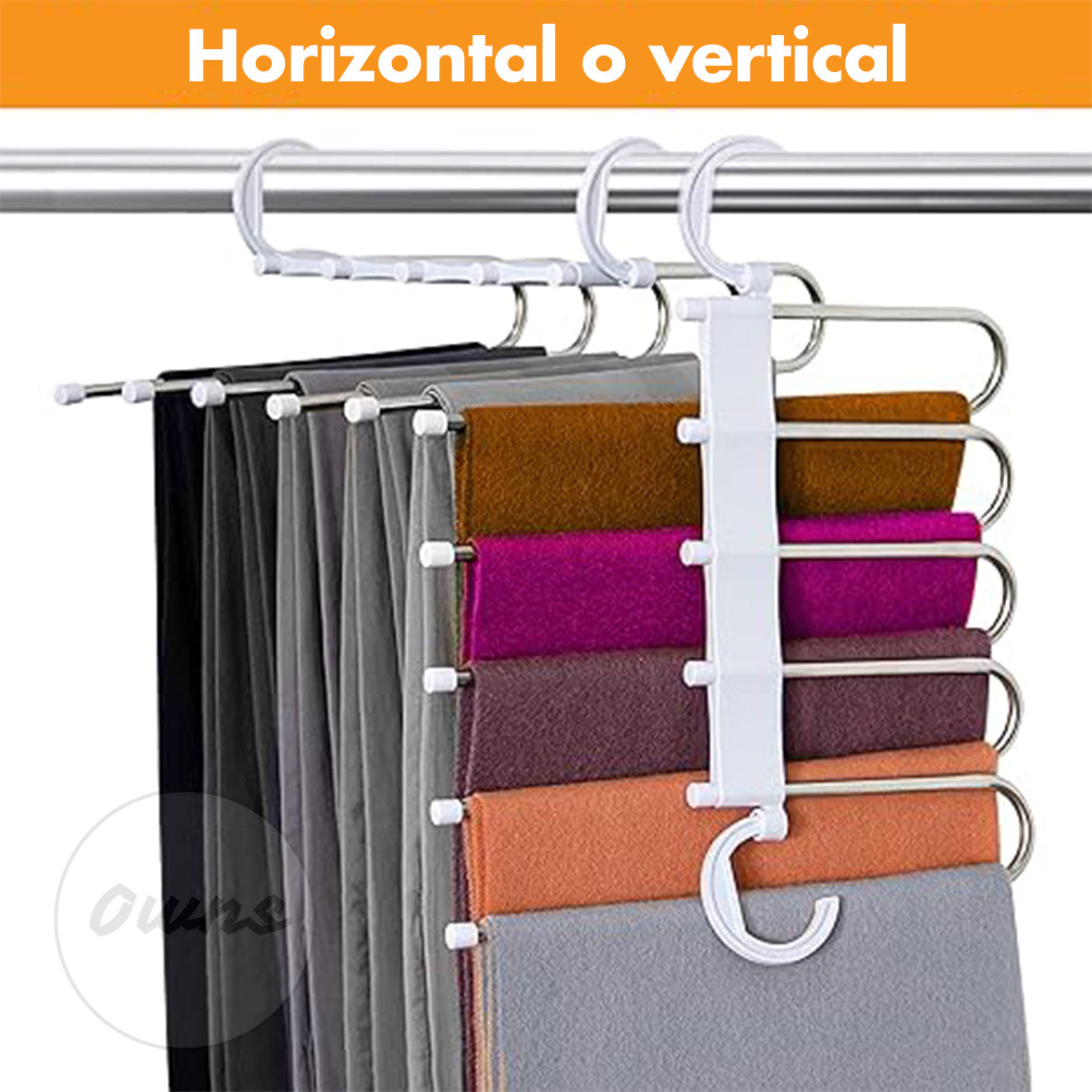 3️⃣ Ajusta la posición: Usa la percha horizontal para ver todas tus prendas o vertical para liberar espacio.