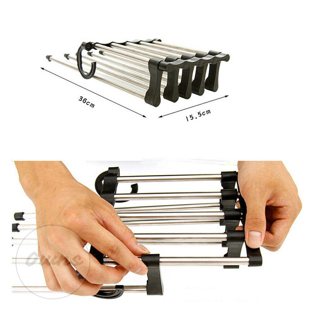1️⃣ Despliega la percha: Abre los ganchos y colócala en posición horizontal o vertical según el espacio que quieras ahorrar.
